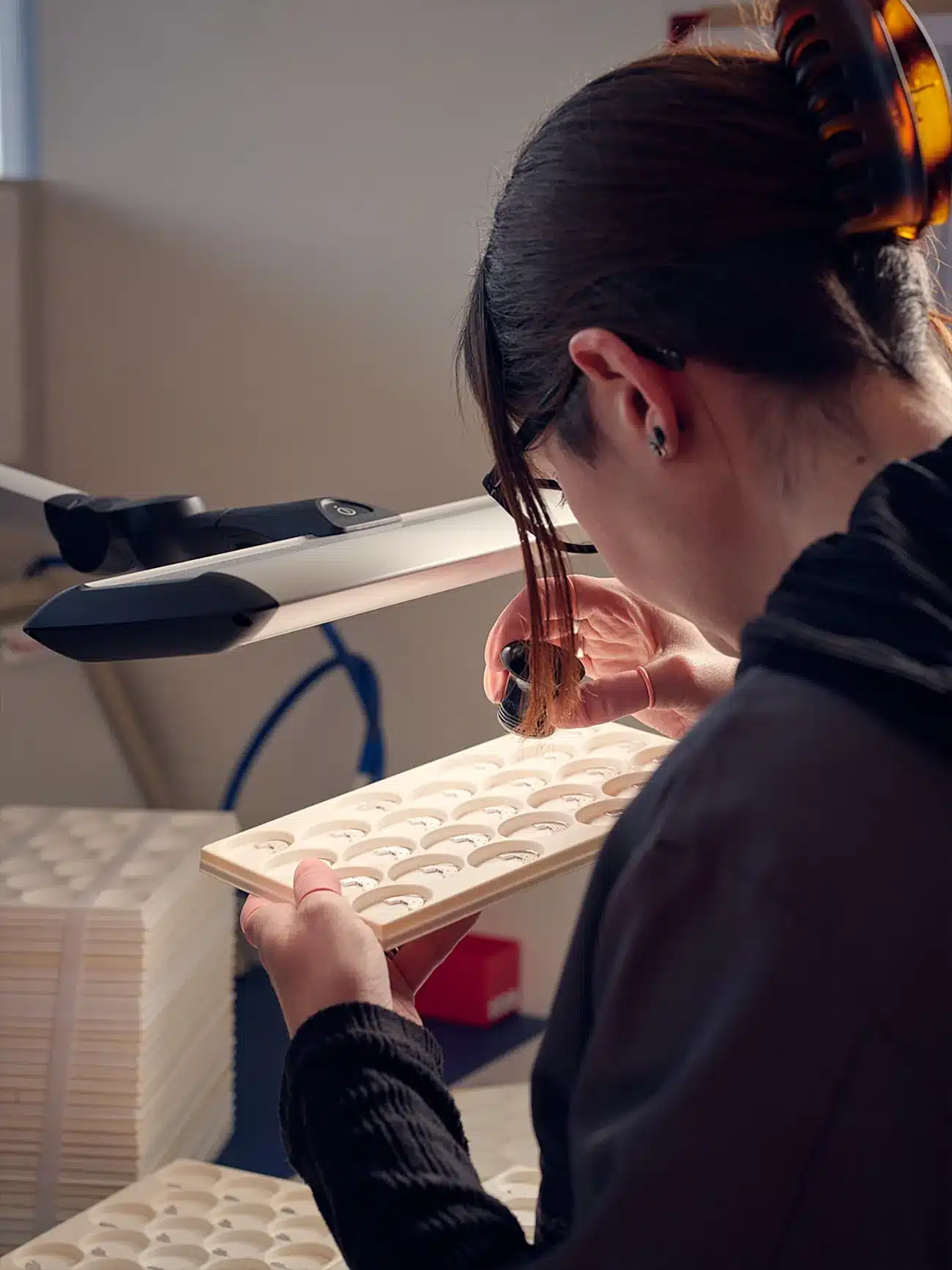 Afin de pouvoir produire des grandes séries, des machines CN pour le perlage et le diamantage viennent s’ajouter au parc de machines.